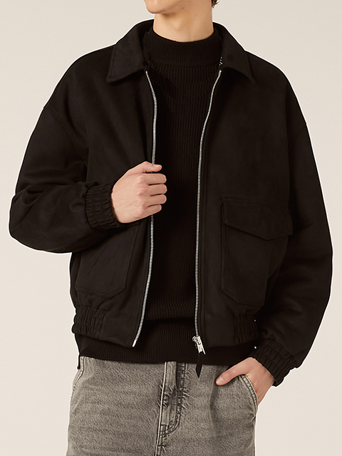 スエード調 裏オニオンキルティング ショートブルゾン(BLACK)