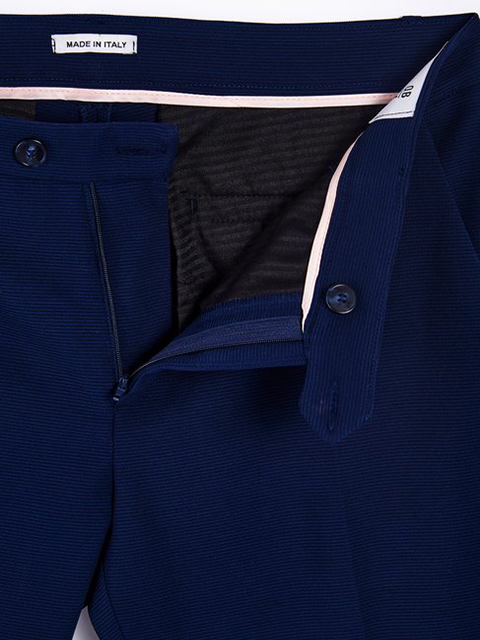 ネイビー系のカラーに細かなメッシュ調のスラックス