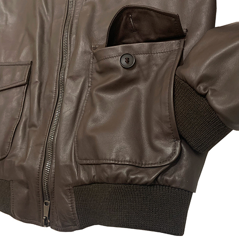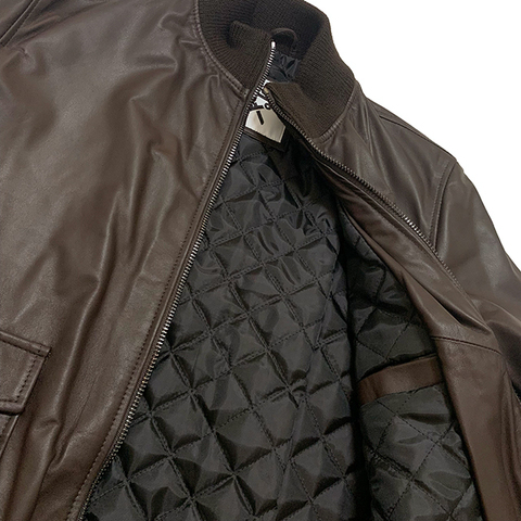 アビエイター 4ポケット キルティング ハイネックジップ ナッパレザージャケット(BROWN)