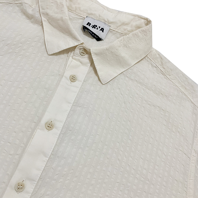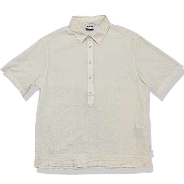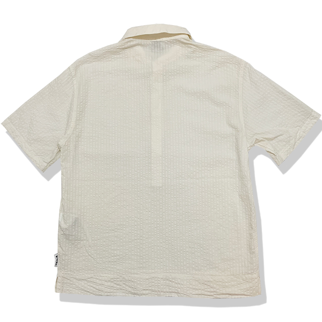 シアサッカー サイドスリット プルオーバーハーフシャツ(CREAM)
