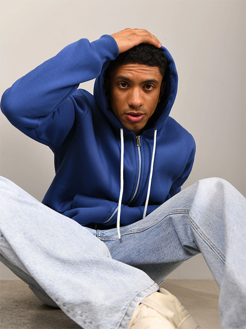 ロゴプリントスリーブ 裏起毛 ジップアップパーカー(BLU COPIATIVO)