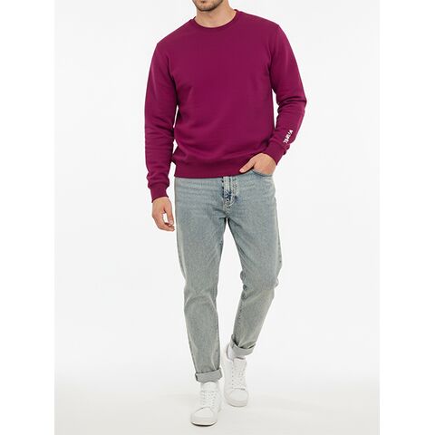 スリーブにロゴが入った、裏起毛で軽く暖かいスウェット。