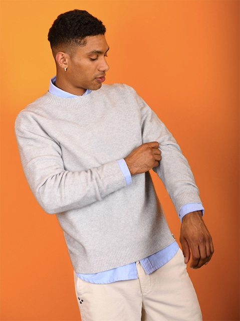 • ライスステッチ 変形ラグラン ビスコースミックス ワイドネックニットソー