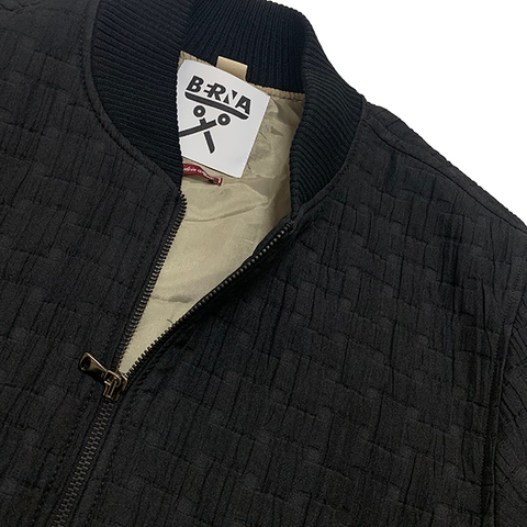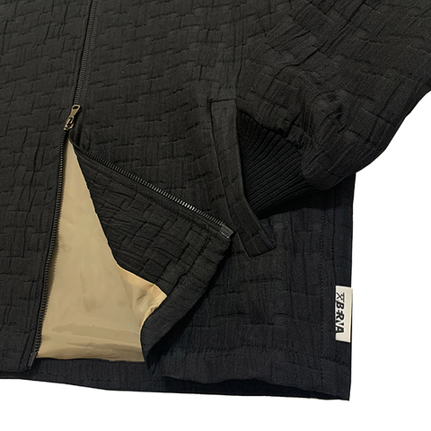 エンボス加工 裏地切り替え ボクシーフィット ブルゾン(BLACK)