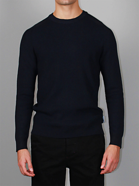ミラノリブ ストレッチ クラシッククルーネックセーター(NAVY)