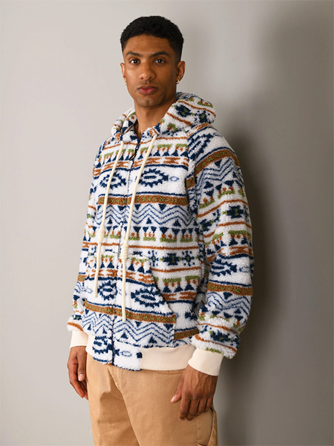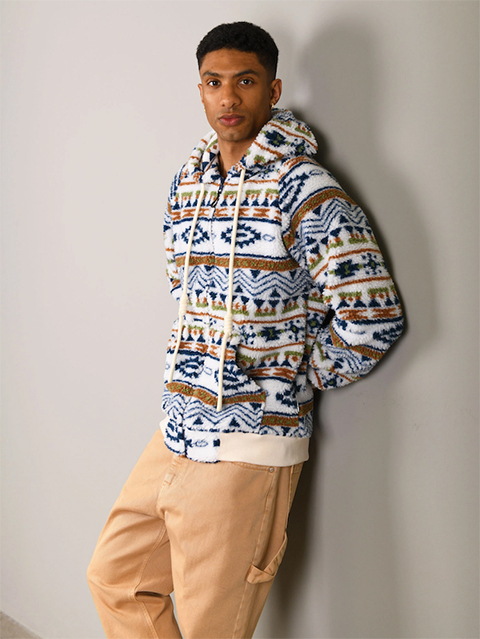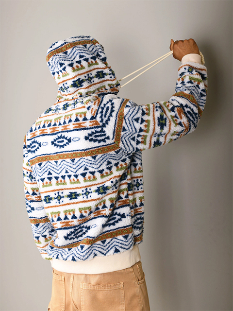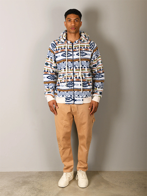 ノルディック柄 ラグラン ジップアップフリースパーカー(MULTI)