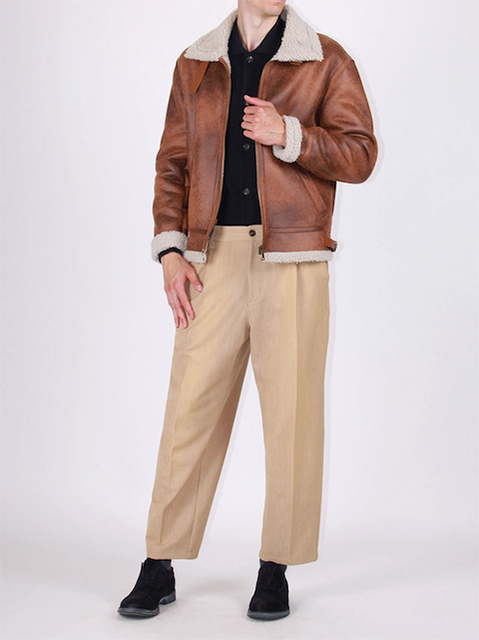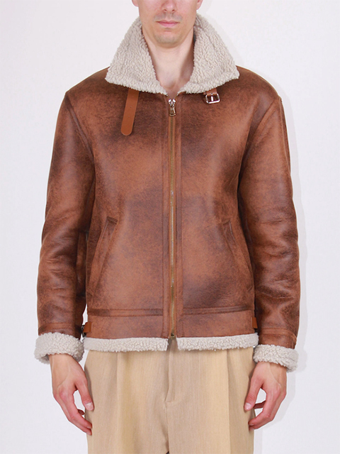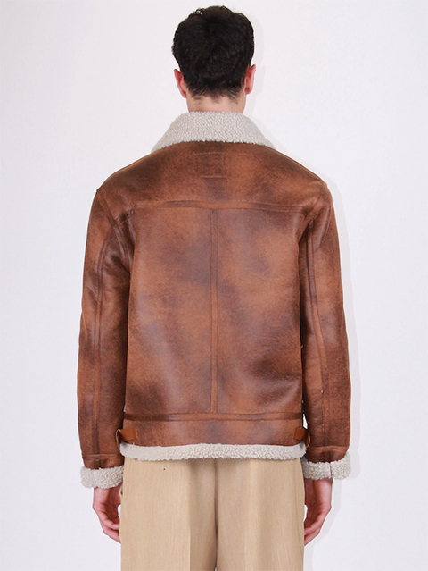 アビエイター ビンテージ調 フェイクシープスキンジャケット(DARK BROWN)