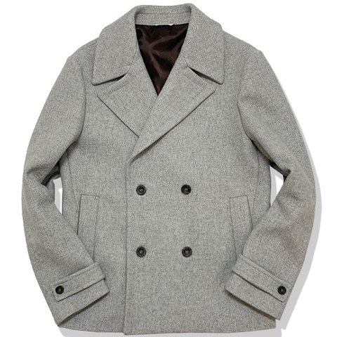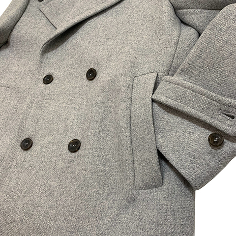綾織り 4ボタン ウールミックスショートPコート(GRAY)