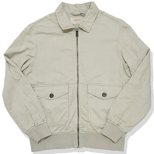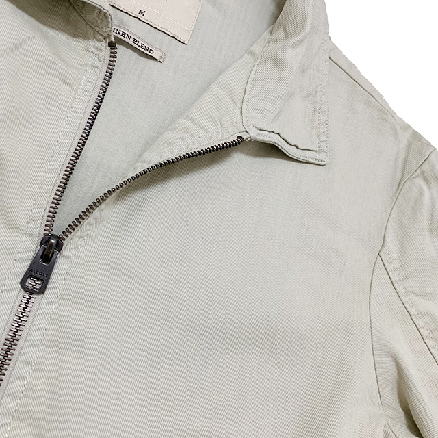 リネンミックス 3ポケット リブ付きジップアップジャケット(SAND BEIGE)