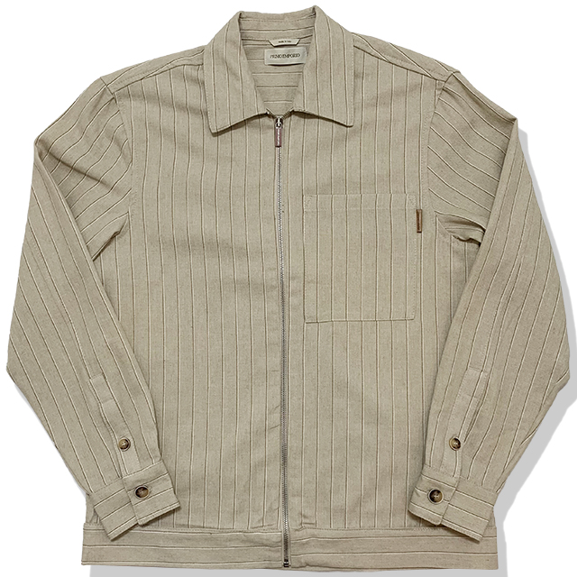 ダブルストライプ リネンミックス ジップアップジャケット(BEIGE)