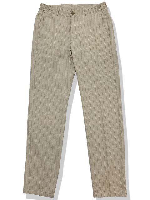 ゴムウエスト ダブルストライプ リネンミックスパンツ(BEIGE)
