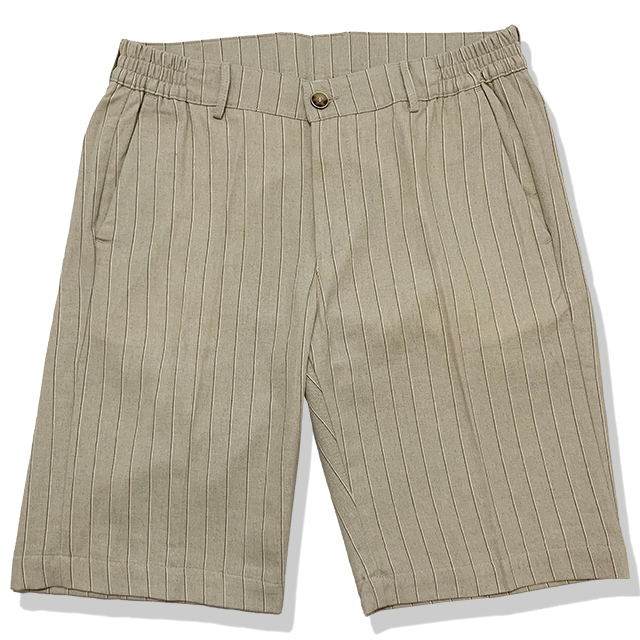 ゴムウエスト ダブルストライプ リネンミックスショーツ(BEIGE)