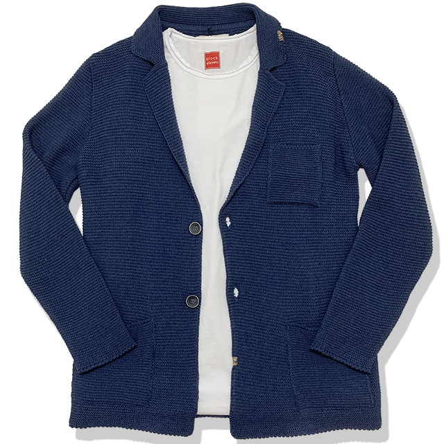 リンクス編みニット ハンドステッチ カーディガンジャケット(DENIM)