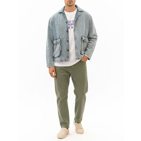 • ヴィンテージウォッシュ加工 立体ポケット ワイドデニムジャケット