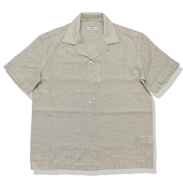 総柄織り リネンミックス オープンカラーシャツ(ECRU)