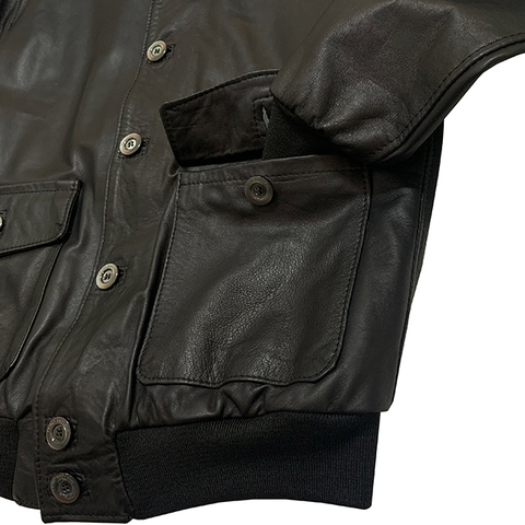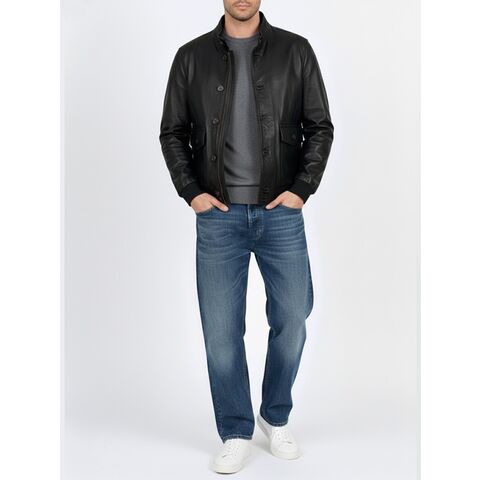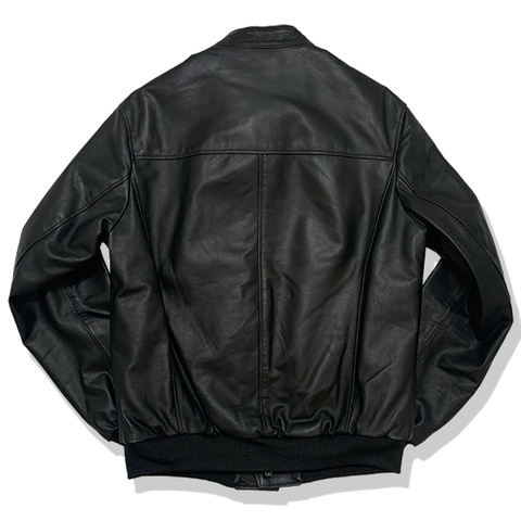 アビエイター リブ付き スタンドカラーレザーブルゾン(BLACK)