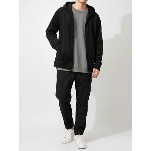 エコセンシカル ラグランスリーブ ピケスウェード ジップパーカー(BLACK)