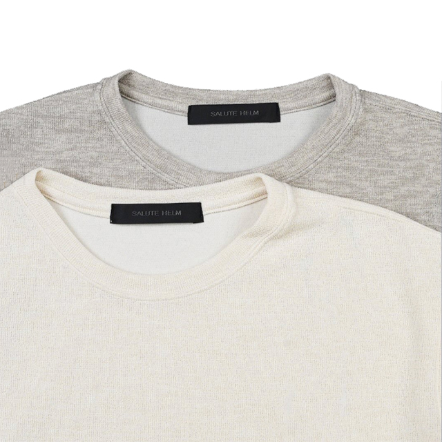 表面はブークレー調の表情がありながらも、裏面はソフトな肌触りで優しい着心地になっています。