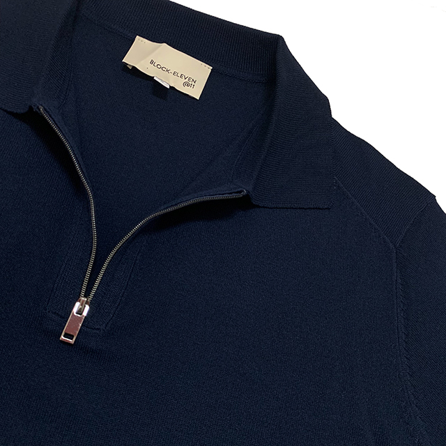 ミラノリブ ハーフメタルジップポロ(NAVY)
