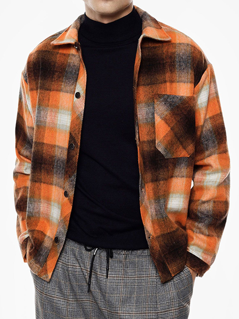メタルボタン オーバーサイズ フランネルシャツジャケット(MULTI)