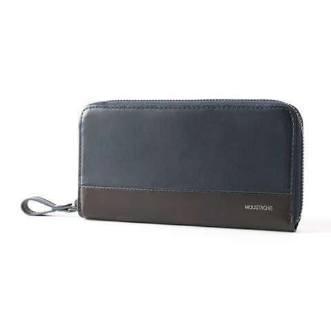 ◆落ち着いた色合いのプルアップレザーをカラーコンビで仕上げたラウンドファスナー長財布。