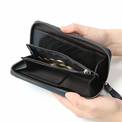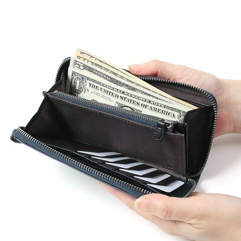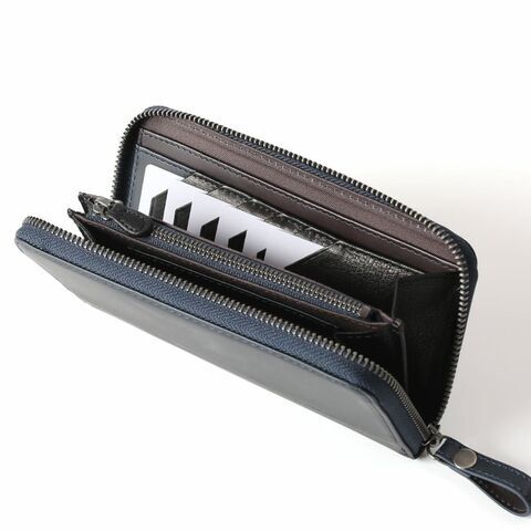 プルアップ牛革×牛革 バイカラー ラウンド長財布(NAVY/BLACK)