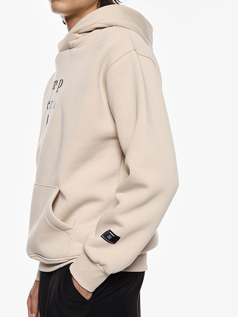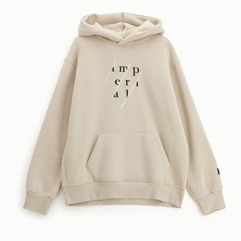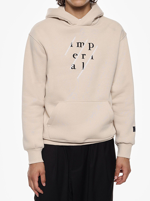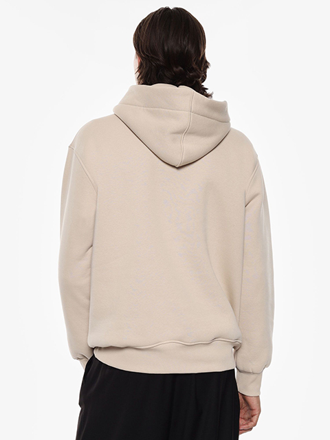 裏起毛 リーフステッチロゴ ボクシーフィット プルオーバーパーカー(BEIGE)