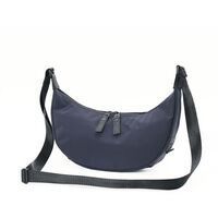 ◆ 杢調ポリエステルとシボ合皮、ベロア合皮をコンビネーションさせた舟形ショルダーバッグ。