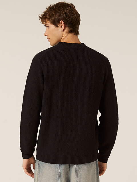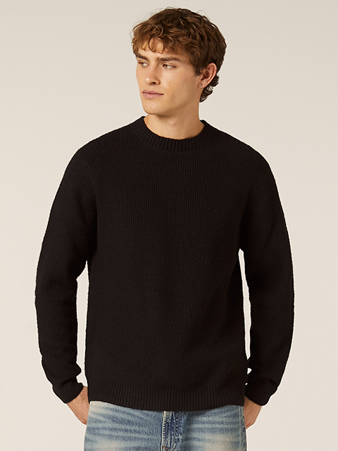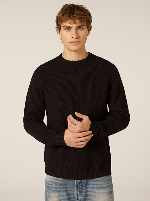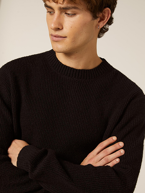 柔らかな素材感とリブ編みで伸縮性のあるニット。