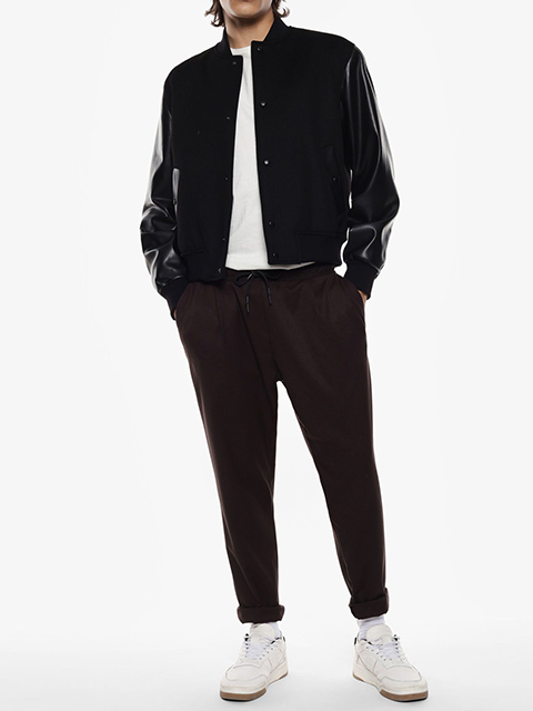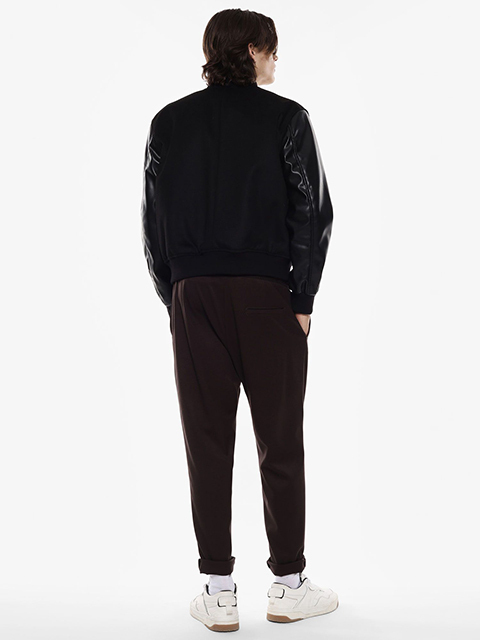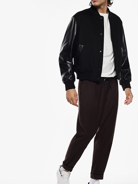 ゴムウエスト ドローコード ワンタックジョガーパンツ(BROWN)
